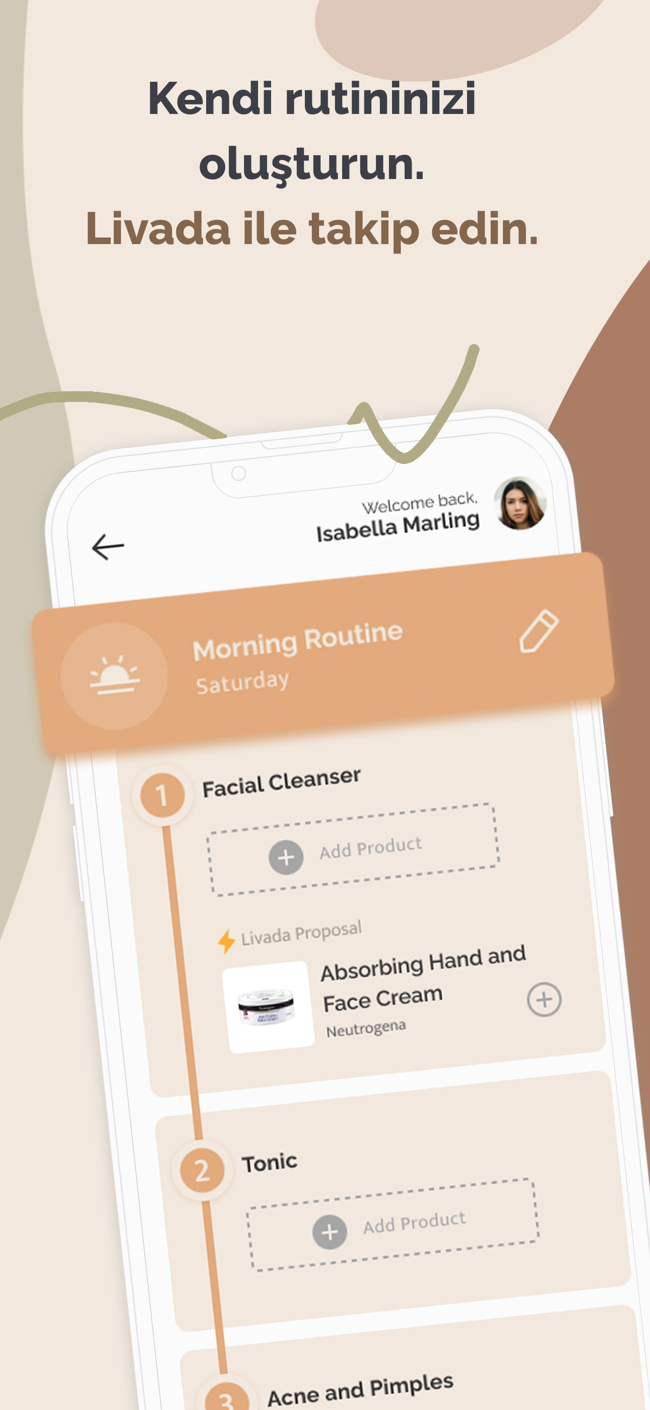 Livada uygulaması sizin belirleyeceğiniz saatlerde cilt bakımınızı düzenli olarak size hatırlatacaktır.